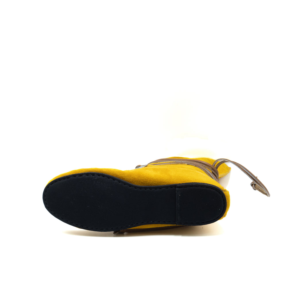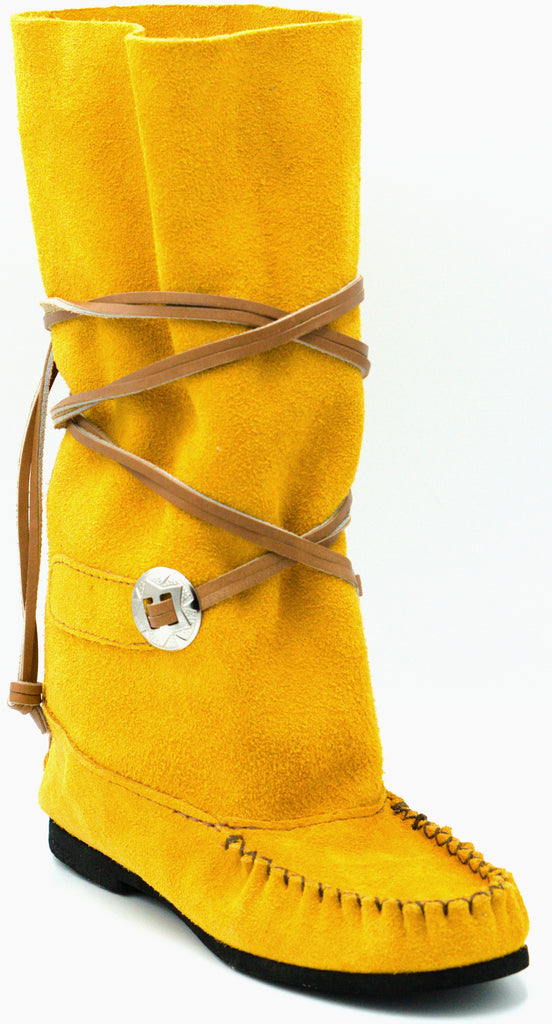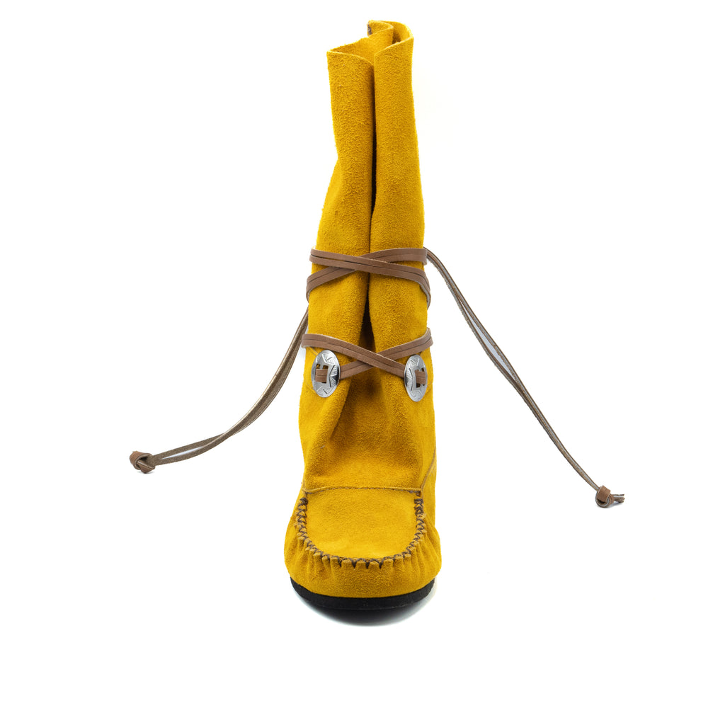 Pour un look western réussit, voici la botte en suède Ehta'. Avec son concho argenté et ses longs lacets croisés, ce mocassin fera tourner les regards lors des festivals! Sentez-vous le vent de l’Ouest souffler? Nous, oui!