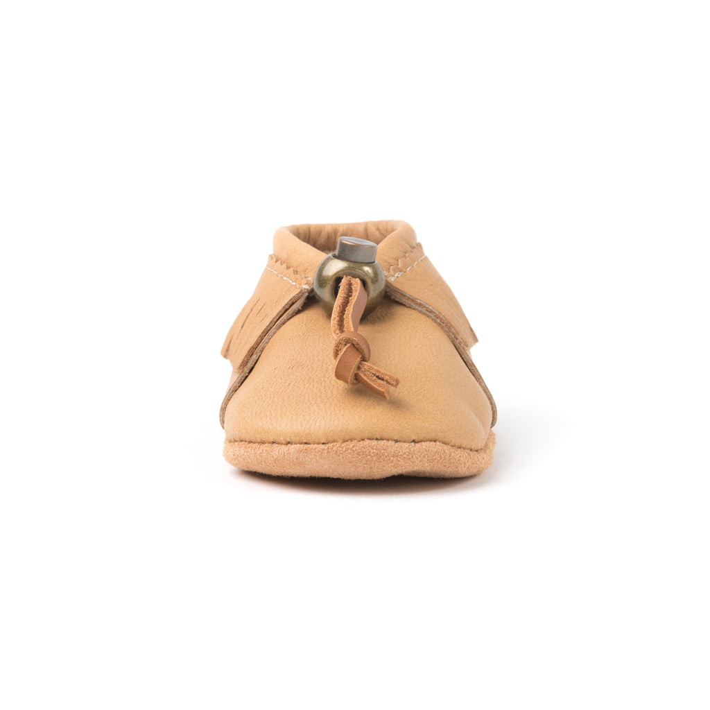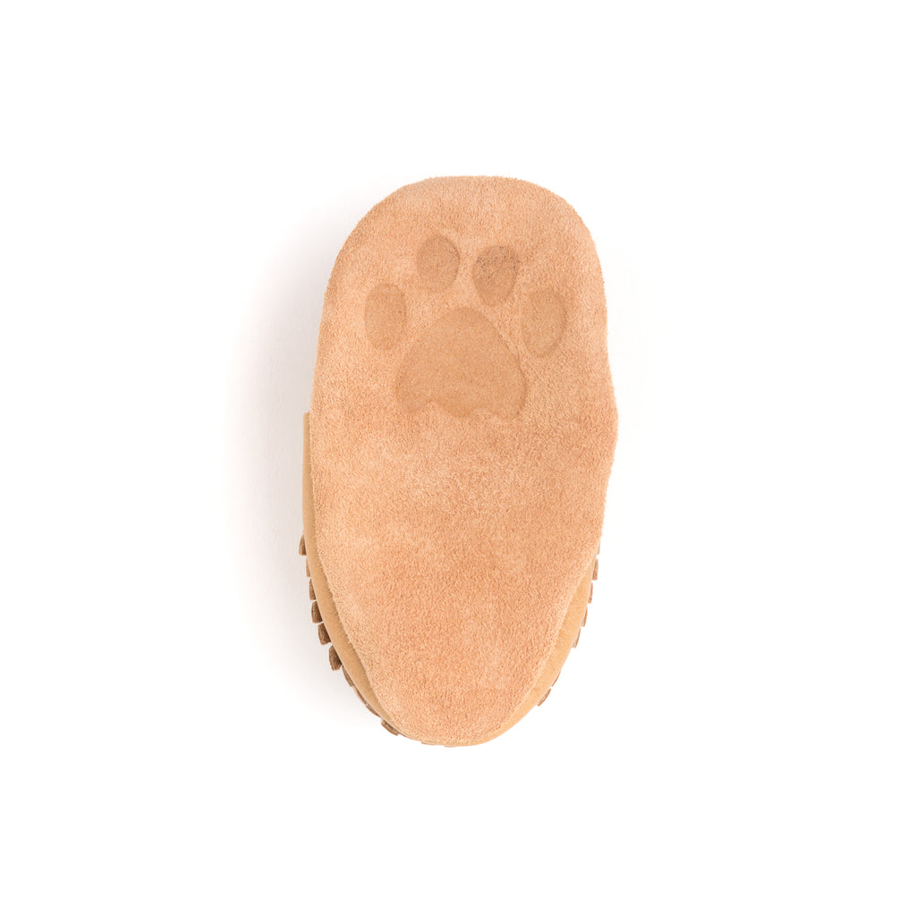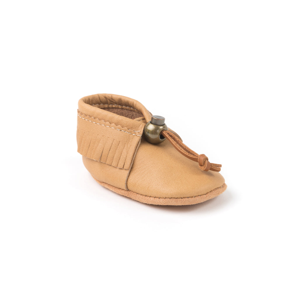 Le YÄNIONYEN’ est notre modèle pour bébé en cuir d’orignal. Frangé, il a un look traditionnel et offre un confort absolu. Une vraie patte d'ours!