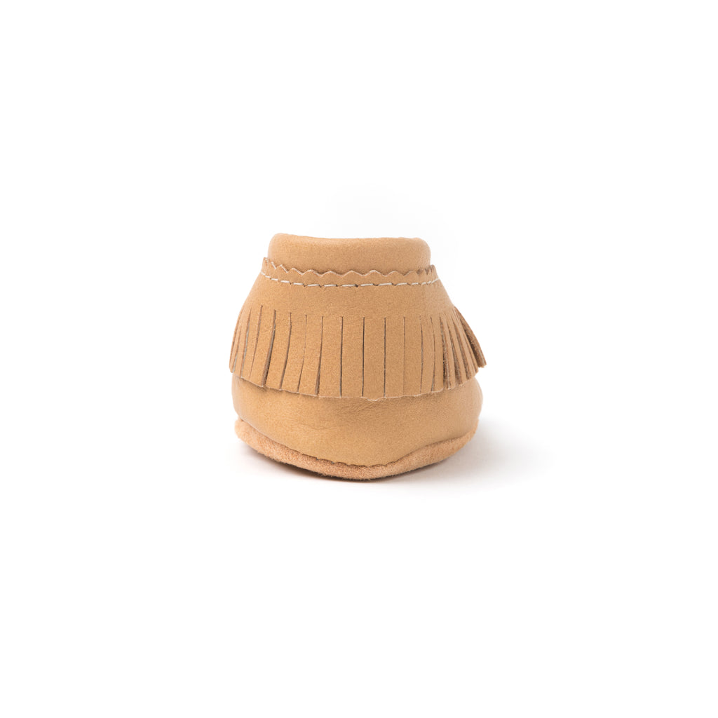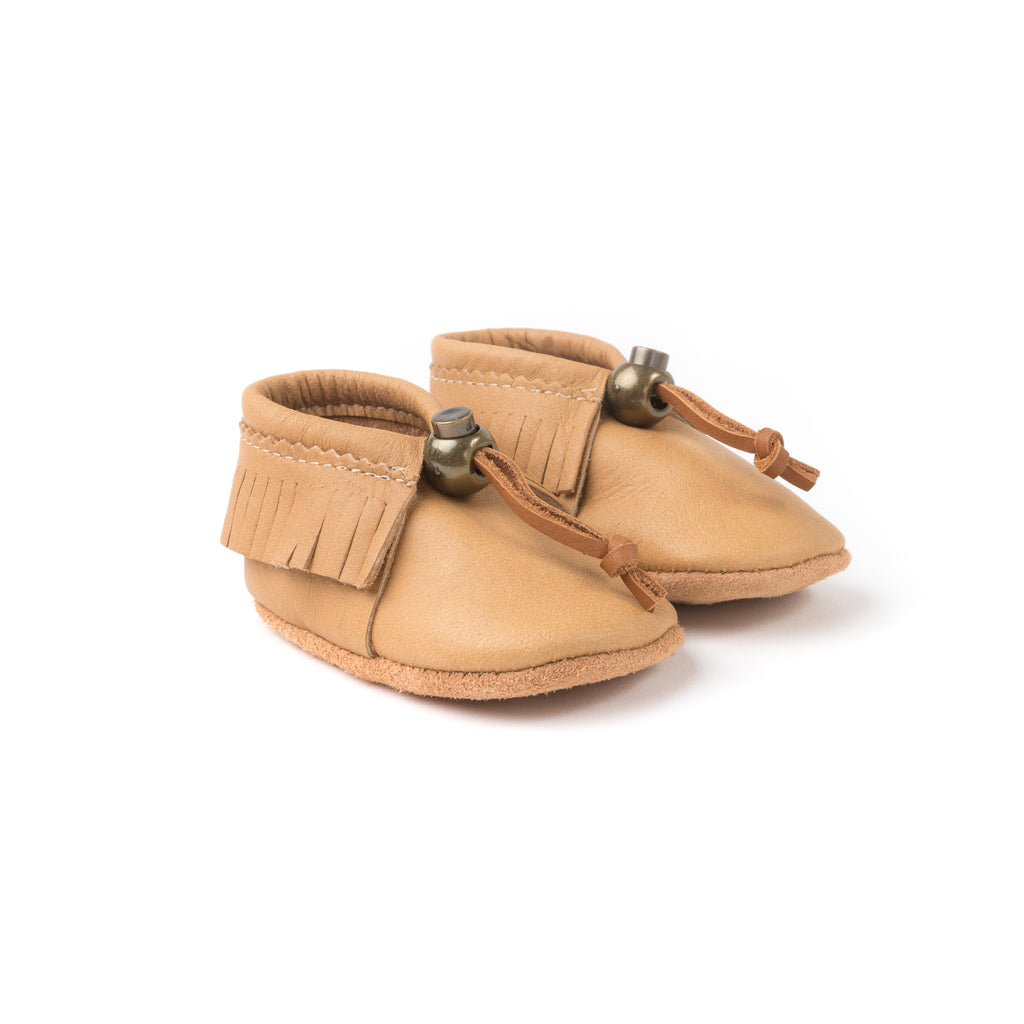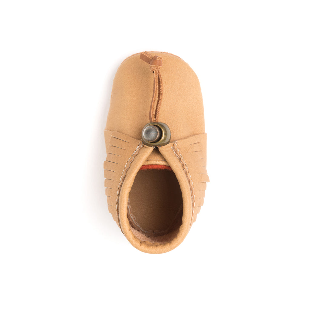 Le YÄNIONYEN’ est notre modèle pour bébé en cuir d’orignal. Frangé, il a un look traditionnel et offre un confort absolu. Une vraie patte d'ours!