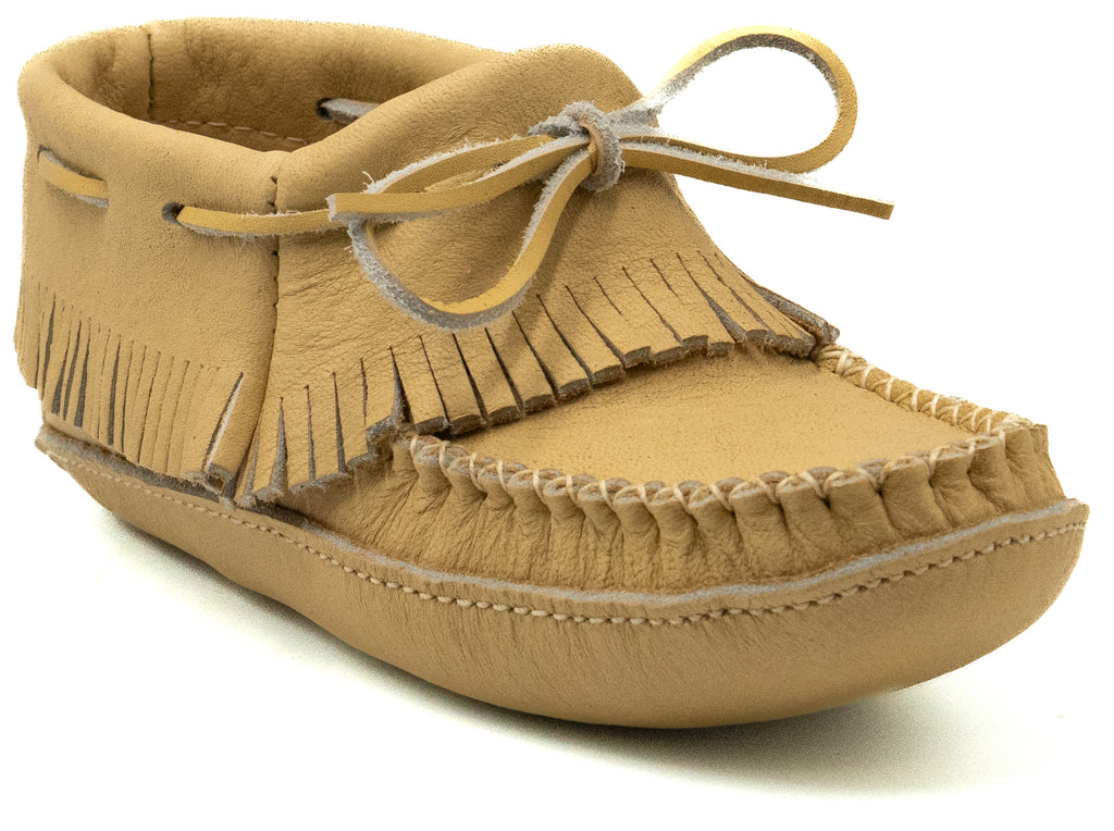 En cuir d’orignal et frangé, le WAHTA’ est une valeur sûre. La semelle double en fait un mocassin d'intérieur confortable et tout-aller, parfait pour le chalet. Le cuir d'orignal est souple et respirant.