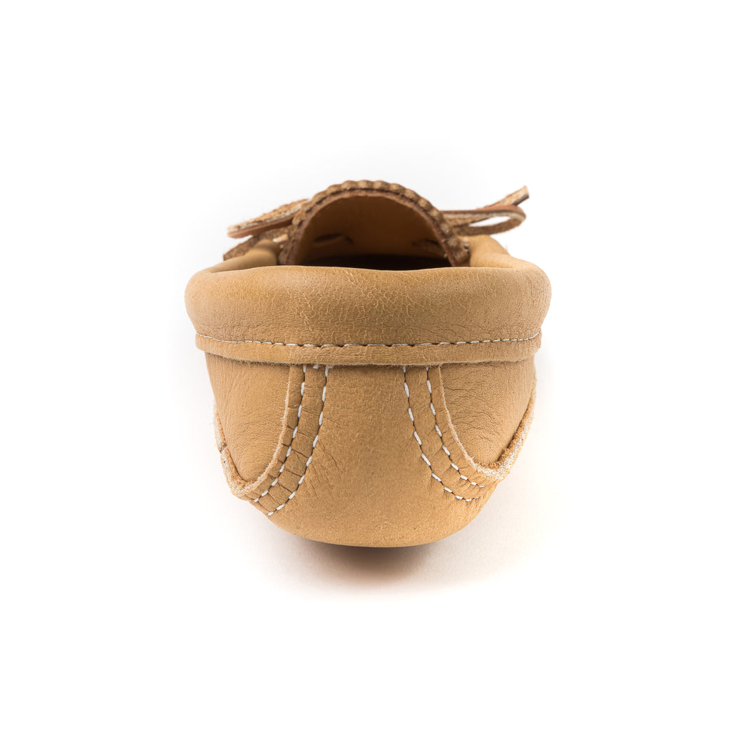 Lorsqu’on adopte le YÄNONHCHIA’, on ne peut plus s’en passer. Sa semelle double épouse la forme du pied et en fait LE mocassin d’intérieur par excellence. Le cuir d'orignal est souple et respirant.