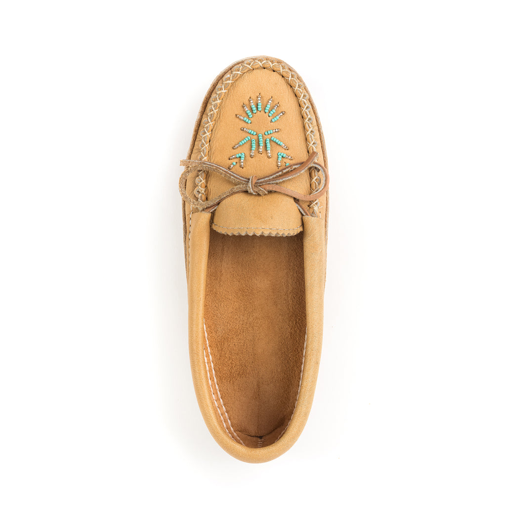 La couleur des perles peut varier d’un mocassin à l’autre selon l’inspiration de nos artistes perleuses.